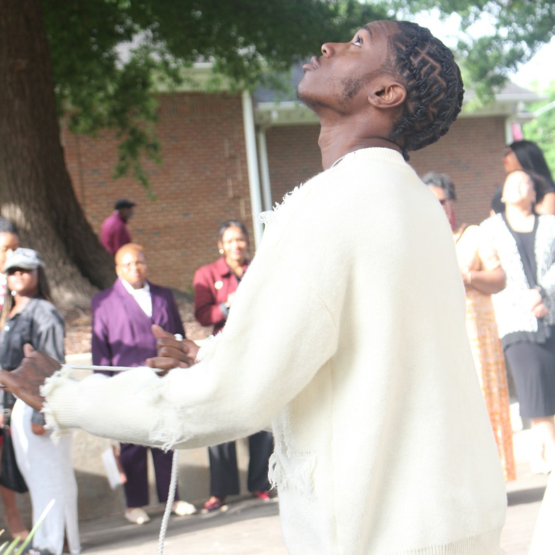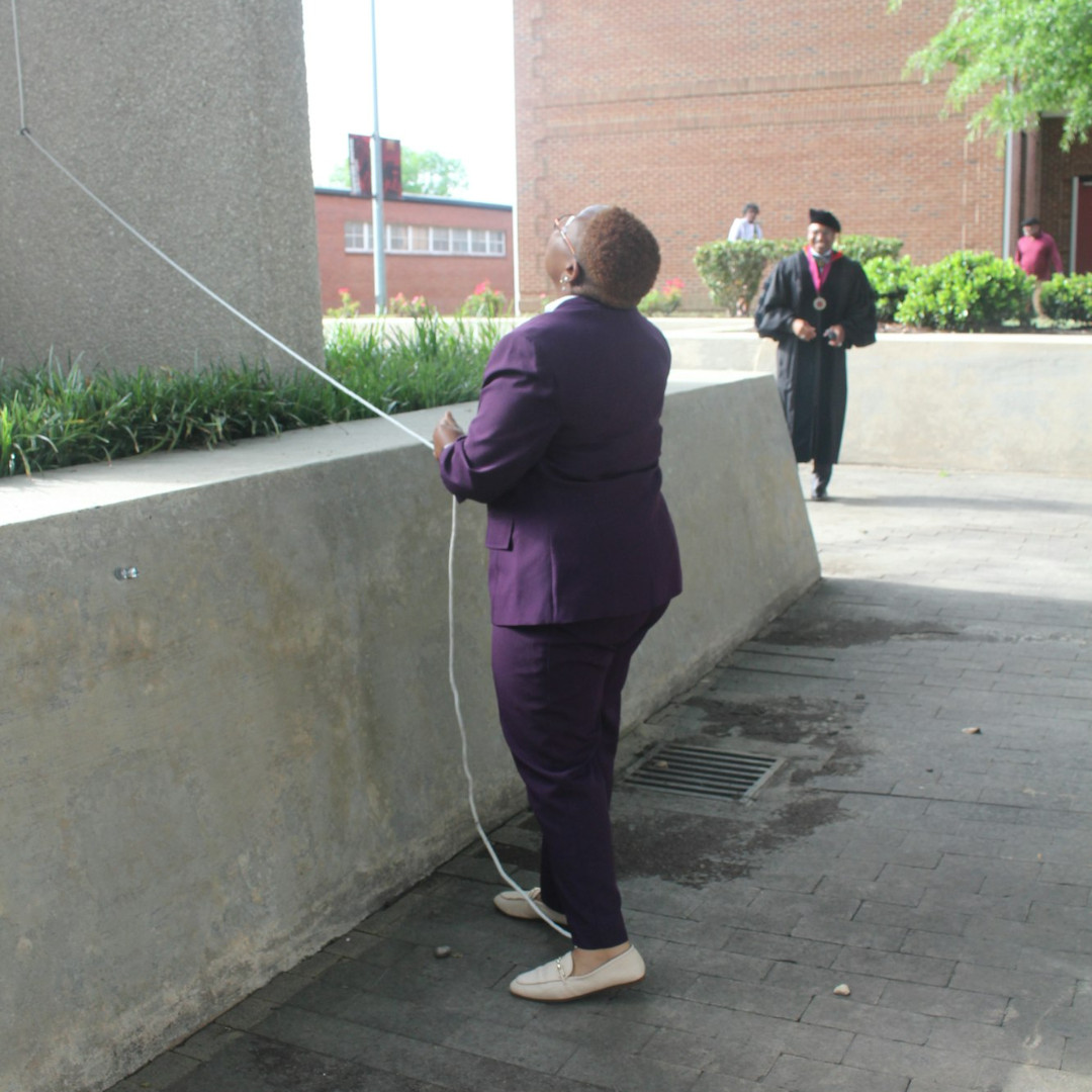Shaw University student Jaden Clark takes a tug during the annual bell ceremony on campus May 10, 2024.