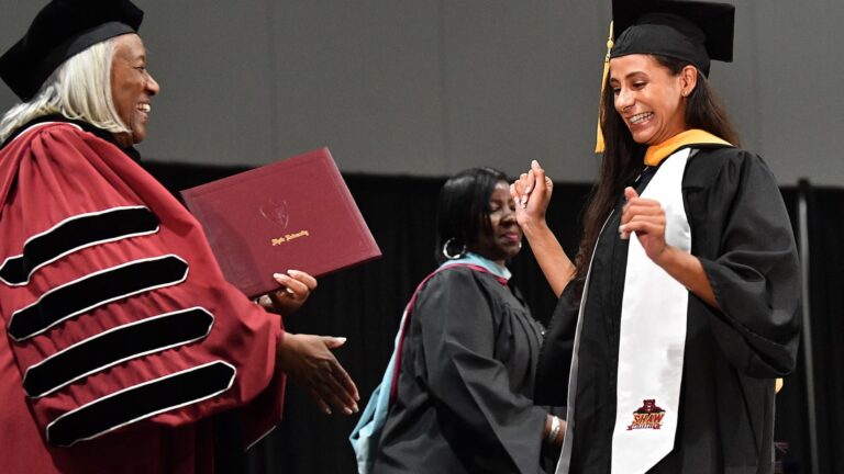 RALEIGH, N.C. — Shaw University held commencement exercises Saturday in the Raleigh Convention Center, where 129 bachelor’s degrees and 45 graduate degrees were conferred.