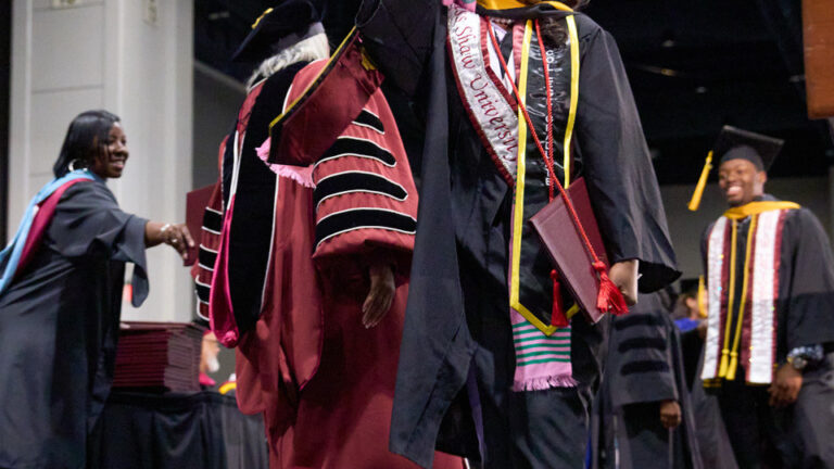“You guys persevered. You guys survived,” Shaw University National Alumni Association President Andre Sheppard told the graduates. “Clap for yourself and embrace this moment.”