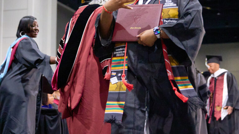 United Negro College Fund President and CEO Michael L. Lomax, Ph.D., praised the perseverance of the class of 2024 during Shaw University’s commencement commencement exercises at the Raleigh Convention Center May 11, 2024.